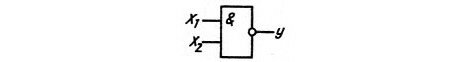 Слева два логических входа, обозначены Х1 и Х2 (их может быть и больше), справа - выход, обозначен Y. Логика работы элемента следующая. Напряжение высокого уровня (единица) появляется на выходе, когда напряжение такого же уровня будет подано на все входы. Напряжение низкого уровня - это ноль.